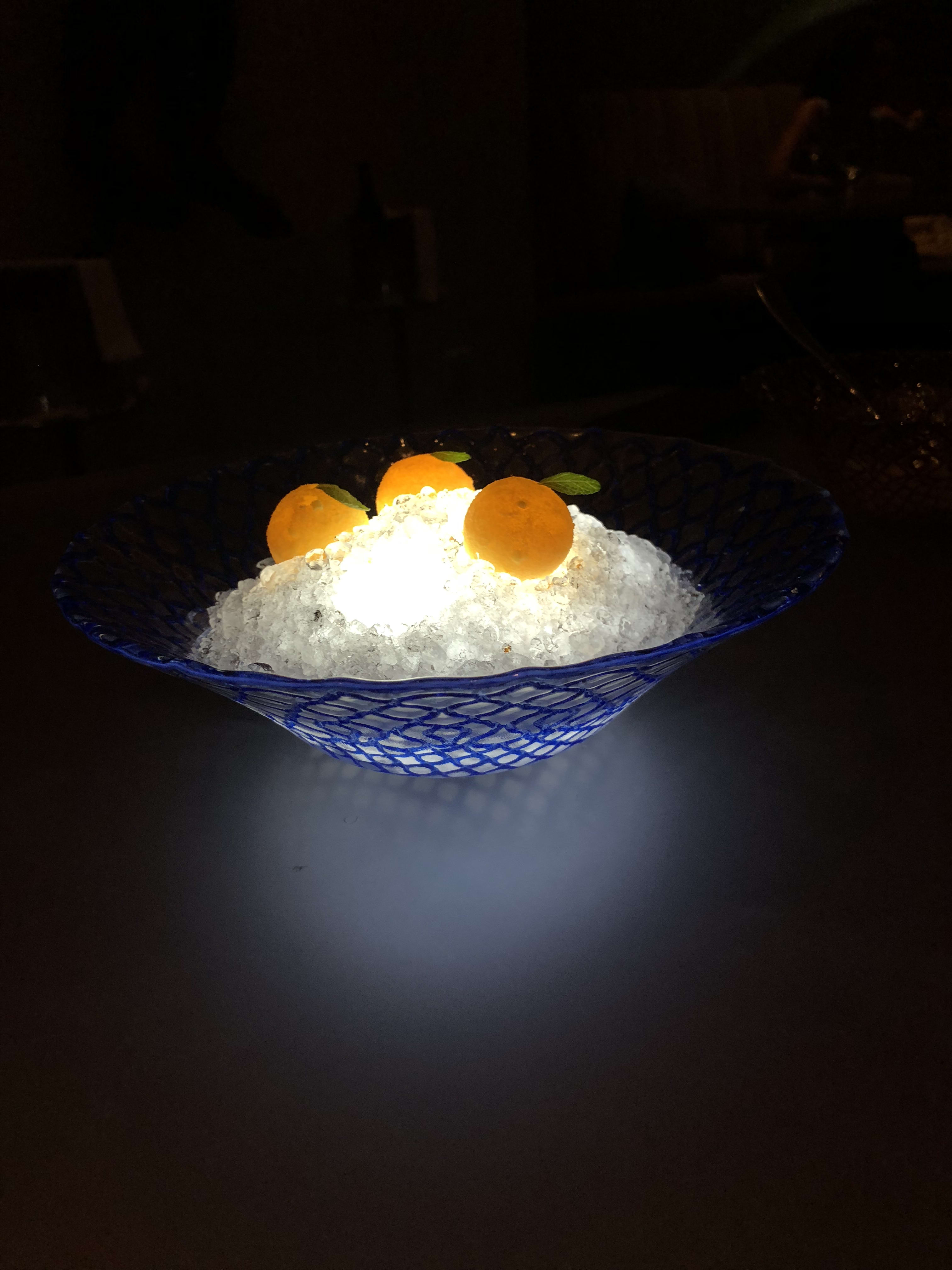 At Alinea, much of the enjoyment comes from the experience. This started from the moment we walked through the front door. We ascended the stairs to the second floor and I was delighted by the smell. It was fragrant and slightly citrusy.