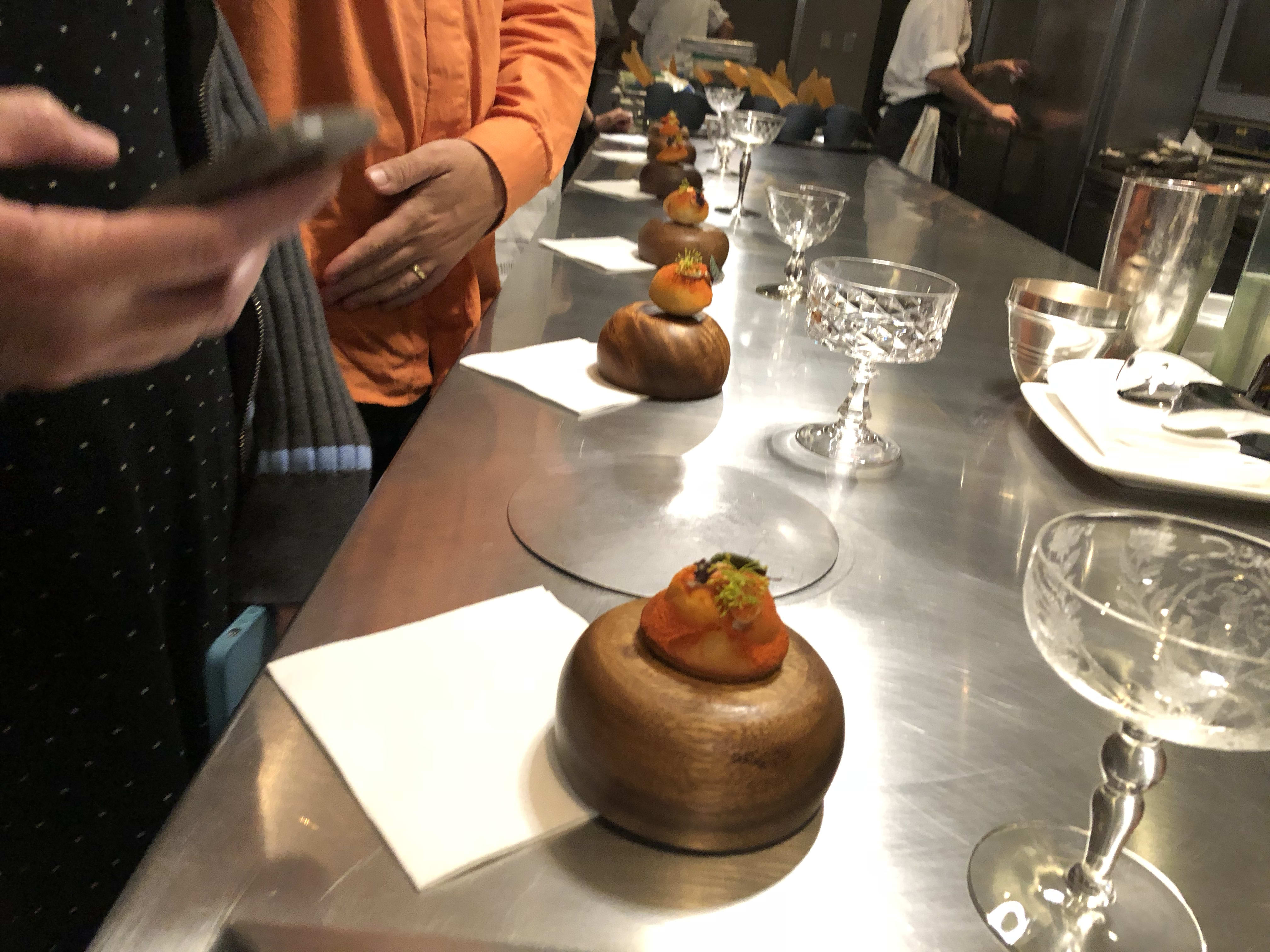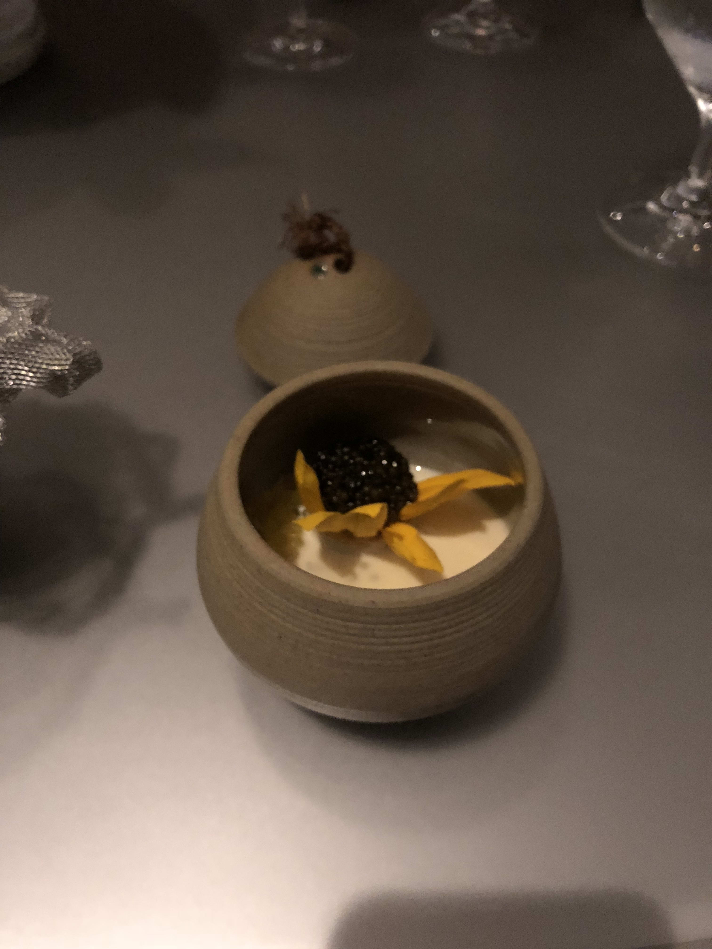 The food throughout was quite good. The starting dish was a bouquet of flowers that was very tasty. It was paired with a bowl of caviar on cream. The caviar was okay but didn’t compare to some I’ve had elsewhere. (The best I’ve had so far was at Quince in San Francisco.) My favourite dish was probably the spanner crab, followed by the octopus. The rest was wonderful but not transcendental.