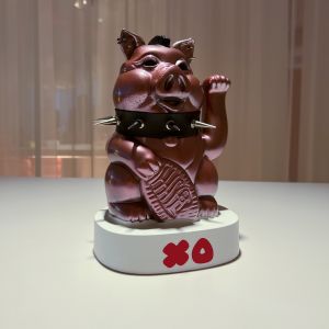 I’m escorted up the stairs, through sliding doors, into the dining room where each table is enclosed with sheer cloth that drapes from the ceiling. The drapery provided privacy while the sheerness avoided it from feeling claustrophobic. On the table was a beckoning cat—er, pig—that would be my companion for the start of this meal.