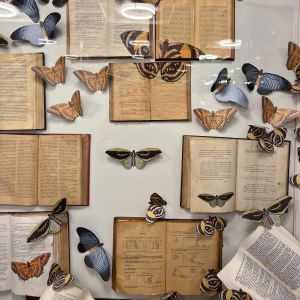 Upon arrival, the entry is two storeys high and filled with kitsch and wonderment. Large flying pigs in tutus, a painting of a pig drinking wine, colourful pinwheels on the wall, and hundreds of butterflies affixed to the ceiling.